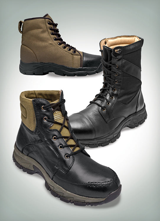 it starts with Canvas Centric Jungle boots and continues till Apache which is a tactical military boot made of leather.