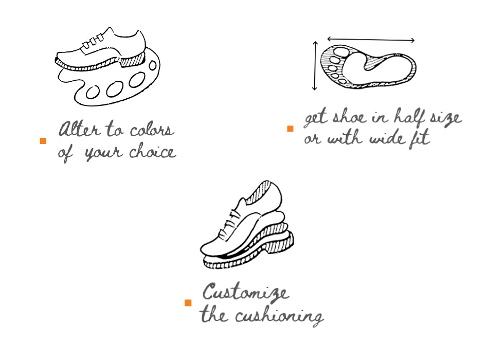 - You can also request for alterations in shoe fit or extra cushioning or request for half sizes.