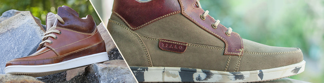 This design borrows elements from iconic Jordan series except that this is our take on it which means that these have been done in premium Genuine Leathers & Johnson is a special creation. It comes with Olive Nu-buck leathers which means that you don't need to worry about any creasing lines. This is a thick 1.6 MM leather ensuring extra life. The tough rubber outsole comes in Camouflage pattern which has been created by adding compound in the sole (and not by printing on the sole). The rubber sole has excellent grip across surfaces. The mid-ankle design does give the extra ankle support. The leather boot's tough architecture makes it suitable for any of outdoor adventures. The tough genuine leather on the shoe uppers is complemented with genuine leather lining on the inside which is a special grade of sweat friendly class of leathers. So even in all your adventures & your feet will stay cool. The foot bed is a sandwich of EVA layer, latex layer stitched with genuine leather which means that these will remain soft over the years. Go ahead fight the war; your feet are well covered!