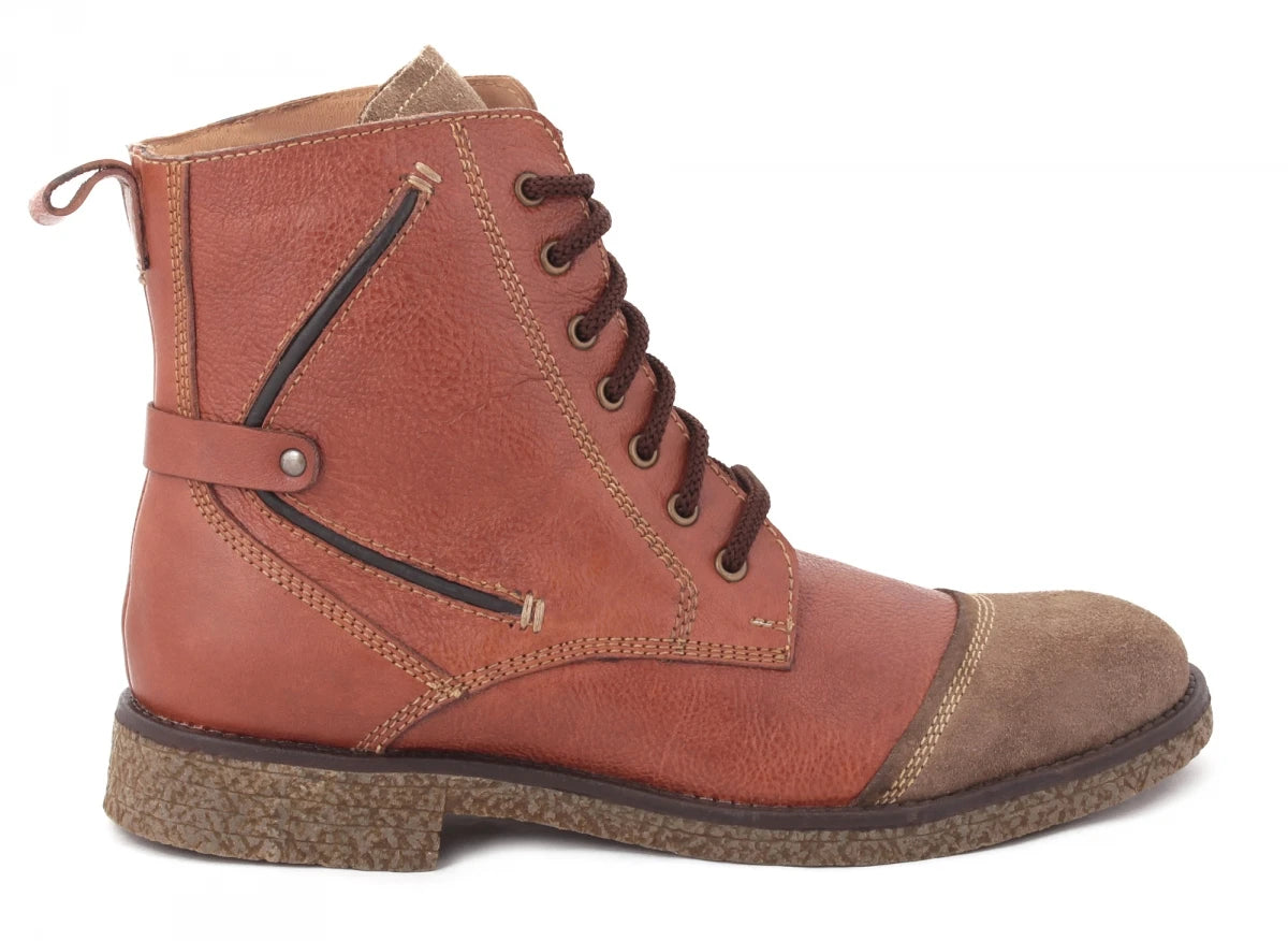 Comfortable high ankle leather boots made with Cemented Construction technique. It comes with Crepe Finish TPR Sole. These awesome boots are leather lined from inside with a special leather which absorbs sweat efficiently, keeping your feet cool.