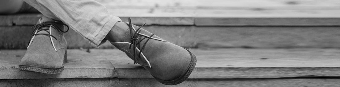 Desert boots also known as Chukka boots are ankle high leather boots. These are essentially lace up boots with two/three eyelits. These were first introduced by Clarks and became very popular with soldiers in world war II.