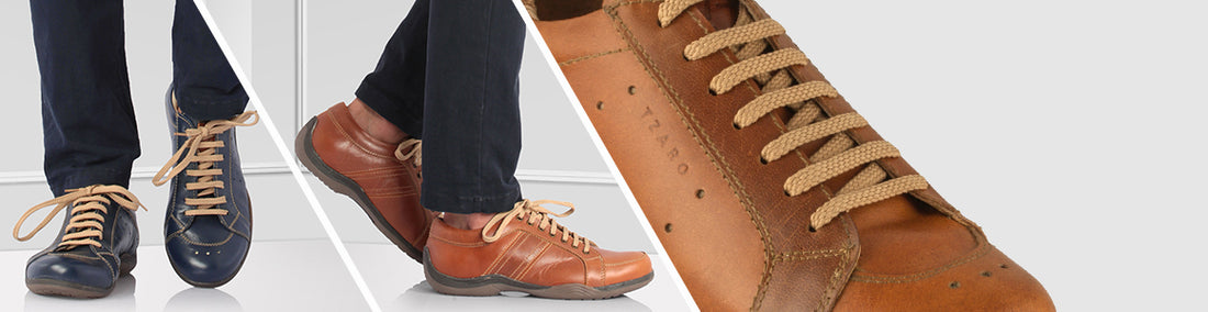Pure leather tan color sneakers has been made with Cemented Construction technique. It comes with TPR Sole. These awesome shoes are leather lined from inside with a special leather which absorbs sweat very easily, keeping your feet cool. We call these SLIM-Fit shoes. If you notice usually the soles go straight from heel to toe while in this series there is a gentle curve in arch area, the sole contours around this area further accentuates the optical illusion of it slimming around the arch area.