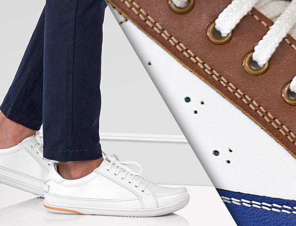 The shoe comes with powerful ventilation – the specialized leather on the inside of shoe absorbs the sweat very quickly and brings it to the surface from where it dries up, keeping your feet cool and sweat free. You can comfortably use it without socks. Your feet will remain stink free.
