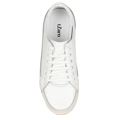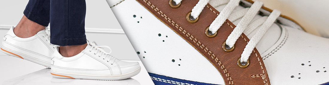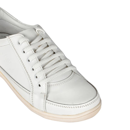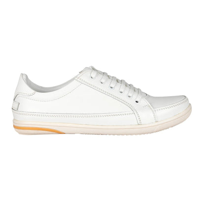 White sneakers are in Vogue right now; so we created a collection for all those who love this Atlanta Series. Needless to say that like all other TZARO shoes, these too are 100% genuine leather creations. This one comes in tough rubber sole which has a strong grip across most surfaces. The white color rubber sole has a touch of orange line running across the base which makes it even more vibrant. These shoes are lined with drum dyed genuine leather to keep your feet cool. You can wear these even without socks. This white shoe will go well with all your denims, chinos. Pair it with oversized shirts, pullovers to make a stunning impact. The genuine leather of 1.4 MM thickness and the rubber sole will ensure that these last over 4/5 years of usage. So go and make the most of it.