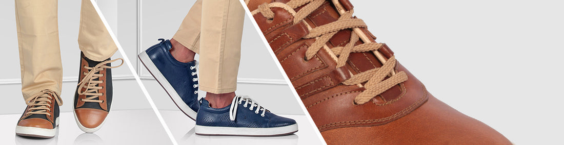 These genuine leather Sneakers go very well with Denims, Chinos, Capris. The shape is formal enough for it to be taken on Casual office days too. We call it Blue Casanova. These comes with a premium walled TPR sole which will survive well over the years and also give you strong grip on most surfaces. The soles do not wear out easily. The foot-bed is a sandwich of EVA layer, latex layer stitched with genuine leather which means that these will remain soft over the years. The tough genuine leather on the shoe uppers is complemented with genuine leather lining on the inside which is a special grade of sweat friendly class of leathers. So even in all your adventures - your feet will stay cool. Go ahead and enjoy these amazing pairs! These will certainly add to the fun quotient!