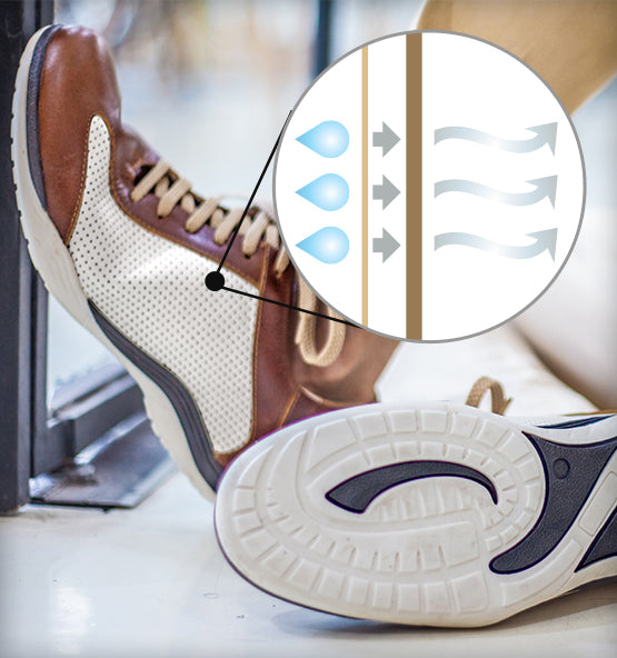 The shoe comes with powerful ventilation – the specialized leather on the inside of shoe absorbs the sweat very quickly and brings it to the surface from where it dries up, keeping your feet cool and sweat free. You can comfortably use it without socks. Your feet will remain stink free.