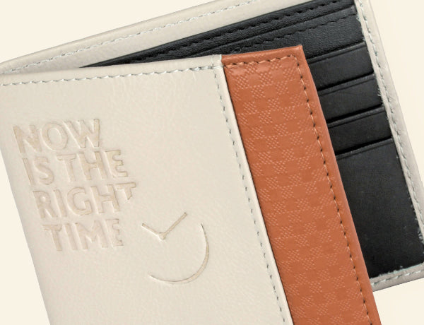We wait for perfect time to do a lot of very important things in life. We believe that there is never a perfect day for anything – ideally today is the best day for a lot of things than tomorrow or a few months later. Though one needs to balance it with practical realities and challenges of life but we really believe that today is lot better day than lot of days which are yet to come. This wallet-design captures this emotion. “Now is the Right Time” has been embossed on the front panel. This wallet comes with two compartments and 8 card slots and 4 slip pockets. It has enough space for all your essentials. Made with premium genuine leathers, we have used off-white color with Tan and Black, which makes it slightly younger design. This wallet like all TZARO wallets is made of tough ingredients, precise and consistent stitching, and is backed by strong interlining materials. This wallet will hold your essentials very well over quite a few years.