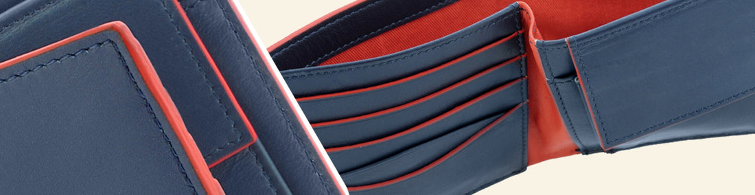 This wallet has a distinct touch of color. Each edge has been colored with a contrasting color.