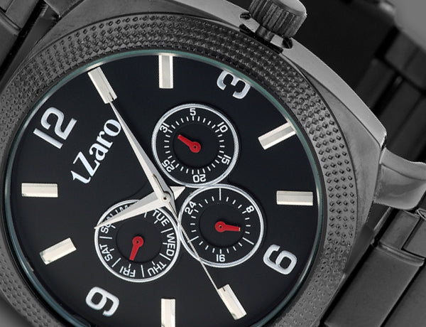 KAZA comes with a general dose of stainless steel. The solid chain, along with the crown and the case-back is all-steel which gives it a great life. The black-ion plating is a lot thicker which gives the black finish a better life. The multifunction watch is powered with VX3J movement along with Sony batteries. The watch is designed to delight you over the years. Though the black surface needs extra care against scratches as it becomes a lot more visible on a black base. The watch is both formal in its design and will compliment you well even with informal attire.