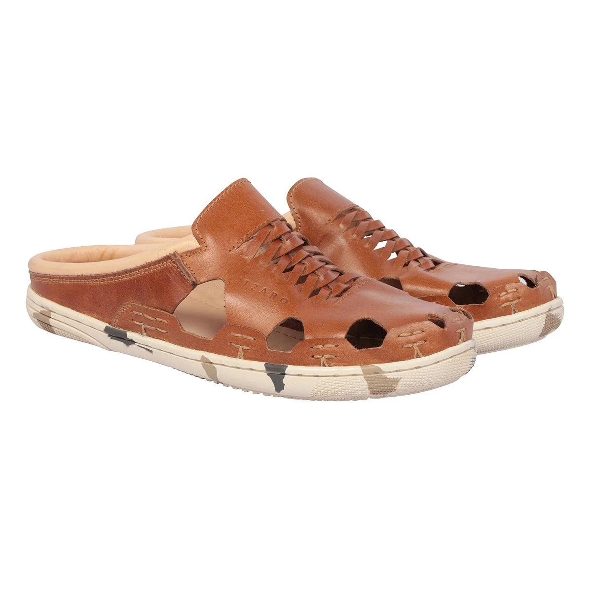Hector as we call it, is a very innovative design and is quite a technical construction. Though it looks like a Sandal or Mule but it has a Moc-toe construction [in simpler words this is an envelope shaped upper, the leather swings below your feet as well]. The advantage of Moc-Toe construction is that it allows extra flexibility when you walk. The upper has been stitched into the sole [technical word is channeling]. The window slit design allows the extra air flow. The heel portion has an 8 MM Latex foot-bed which feels like the most comfortable mattress, this cushion has a life of over 5 years of daily usage. The lining on this is sweat friendly genuine leather lining. That makes it even more comfortable. The rubber sole has been given a special treatment to give it a Camouflage pattern. Combined with thick happy looking TAN leather. This is a very vibrant combination. You can wear it comfortably and also grab a few eye-balls for these stunning pair!
