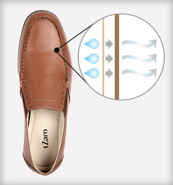 The shoe comes with powerful ventilation – the specialized inside leather absorbs the sweat very quickly and brings it to the surface from where it dries up, keeping your feet cool and sweat free. You can comfortably use it without socks. Your feet will remain stink free.